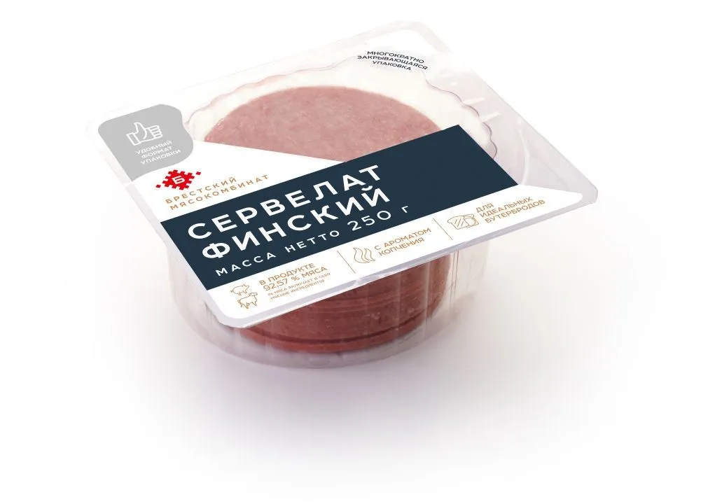 Купить Колбаса варено-копченая сервелат «Финский» 250г можно с доставкой по Пскове. Мы гарантируем отличное качество и свежесть наших белорусских колбас!